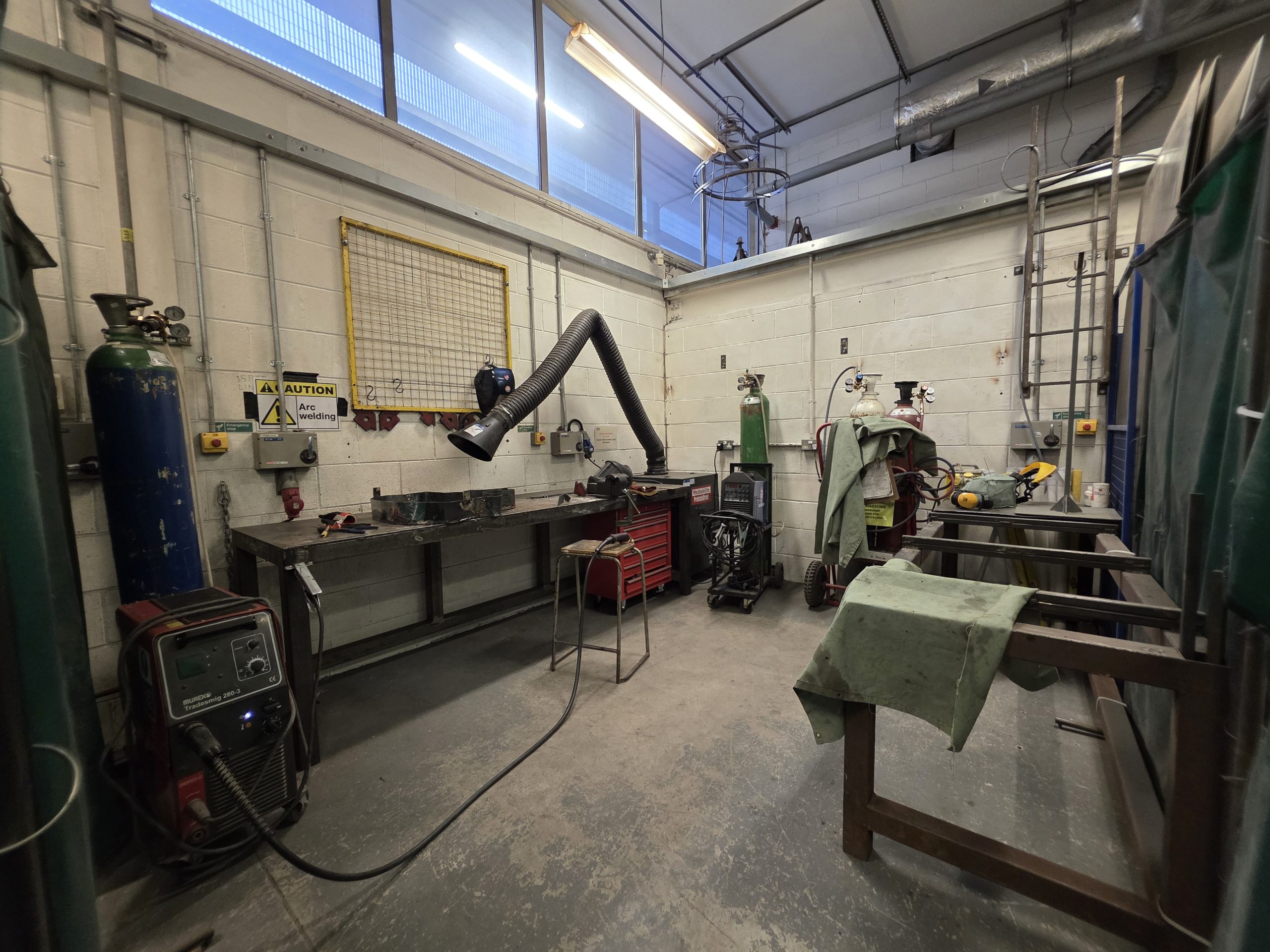 Our Metal Workshop – Welding Area, is suitable for welding metal sheet and rod using MIG and TIG welders, and Oxy-acetylene.