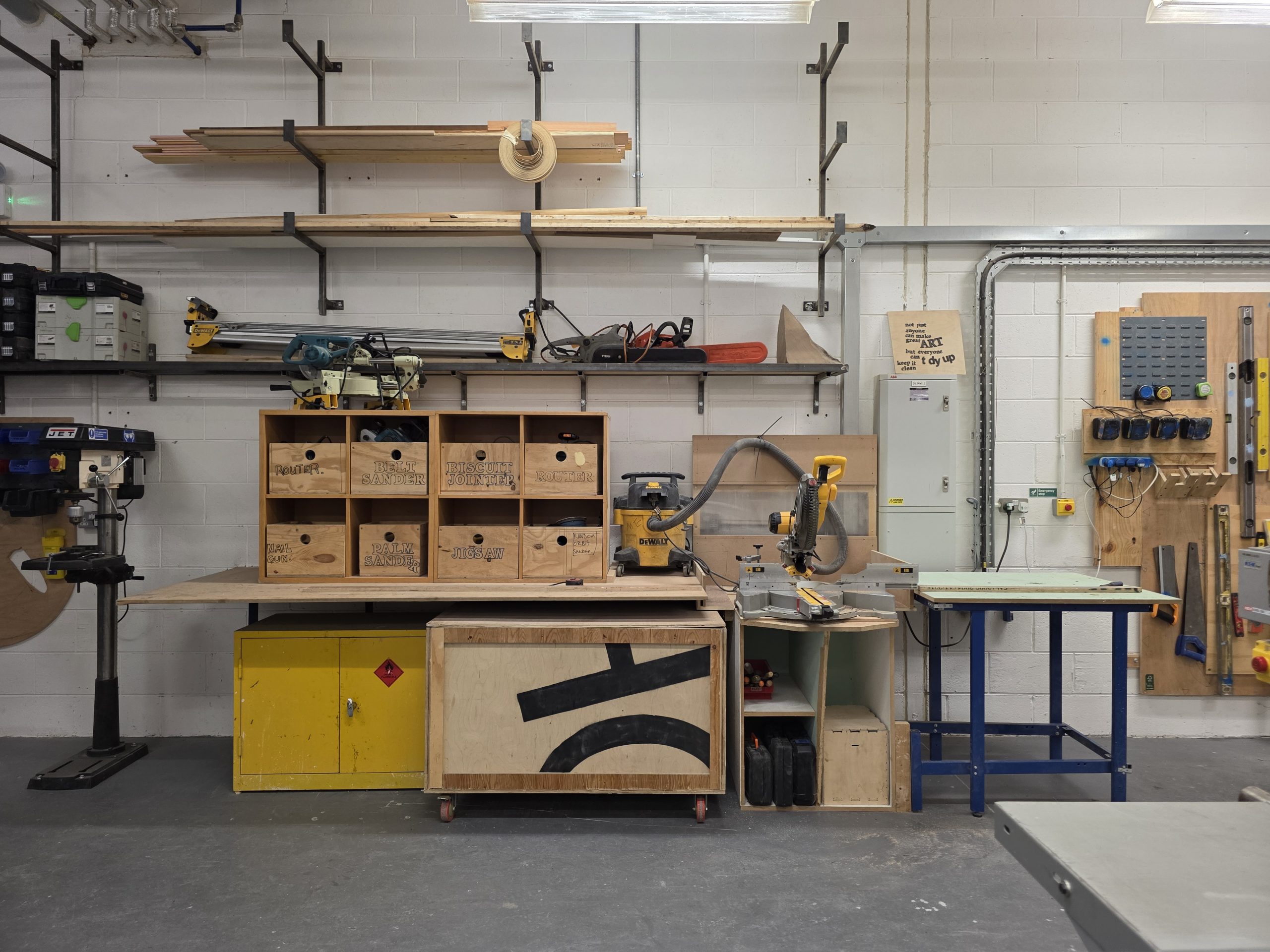 Our Wood Workshop is a large workshop with several benches for use in conjunction with hand-held equipment and Named User Equipment, see ‘Description’ below.