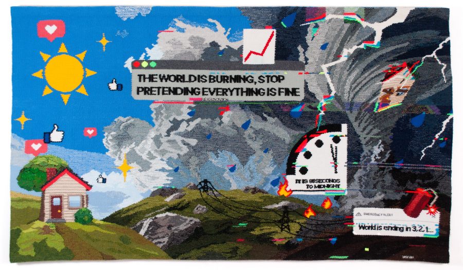 Image: Molly Kent, Insta Perfect, But at what cost, Tapestry weaving and embroidery, 2025.